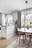 Till vänster om hallen finner vi det rymliga vardagsrummet som erbjuder flertalet möbleringsmöjligheter och är stort nog att rymma soffa, matplats, mediamöbler och arbetshörna om så önskas. Rummet pryds med charmiga detaljer som takrosett, lister, fönsterbräda i sten och generös takhöjd. Parkett på golv och målad strukturtapet och tapetserad fondvägg.