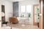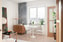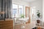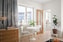 Sällskapsrum, sovalkov och kök - Här ges gott ljusinsläpp och vardagsrummet ger en smart planerad yta med en avskiljd sovalkov. Här finns plats för stor säng och byrå i sovavdelningen, samtidigt som rummet ger en naturlig yta för soffa, skrivbord och matplats intill fönstret.