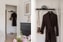 Välkomnande hall med plats för avhängning och förvaring i garderober. Ljusa ytskikt och genomgående trägolv skapar ett enhetligt och tilltalande första intryck.