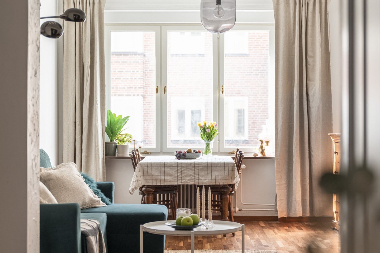 Välkommen till denna välplanerade genomgångsbostad som kombinerar charmiga originaldetaljer från byggåret med en smart och yteffektiv planlösning. Här möts du av ett socialt kök med plats för matbord, perfekt för både vardag och umgänge. Vardagsrummet erbjuder gott om utrymme för en bekväm soffgrupp, medan bostadens ljusa planlösning förstärks av stora fönsterpartier. Rymligt sovrum med plats för stor säng och bra förvaring i klädkammare.