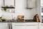 Kök - Stilrent kök med vita luckor och vitmålad tegelvägg ovanför bänkskivan i mörk träd. Plats för matbord för 4 personer. Ljusa väggar och brädgolv. Här finns spishäll, ugn, kyl/frys, mikro samt kolfilterfläkt.
