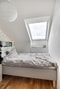Sovrum - Sovrum med parkettgolv och ljusa väggar. Här finns plats för säng och enklare förvaring. Takfönstret ger ett behagligt ljusinsläpp och förstärker den lugna känslan i rummet.