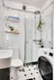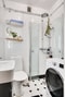 Badrum - Helkaklat badrum som renoverades 2021. Duschhörna, WC, handfat, badrumskåp samt kombinerad tvättmaskin och torktumlare.