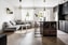 Inbjudande socialt rum som ligger i öppen planlösning med köket. På golvet vilar det återkommande kakelgolvet och väggarna är vita. Rummet har en härlig volym för många gäster, både sittande vid middagsbord och i soffor.