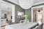 Ett stämningsfullt rum i gröna toner med fiskbensparkett, vackert burspråk och klassisk takstuckatur. Perfekt för både vardagsmiddag och fest. Pardörrar mot både hall och vardagsrum förstärker sekelskifteskänslan.