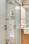Lägenheten har dessutom ett större badrum med dusch, golvvärme samt extra förvaring, vilket gör vardagen ännu smidigare. Här finns det även en helkaklad gäst-wc utrustad med behaglig golvvärme. Ännu ett plus är att lägenheten är väldigt nära placerad till föreningens garage.