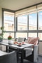 Från vardagsrummet kliver du ut på en rymlig inglasad balkong belägen på tredje våningen. Här kan du njuta av utsikten och koppla av i en lugn och avskild miljö – perfekt för morgonkaffet eller sena sommarkvällar. Balkongen erbjuder gott om plats för sittgrupp eller växter och blir en förlängning av vardagsrummet under årets varmare dagar.
