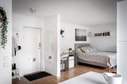 Välkommen in i denna ljusa och välkomnande hall, som erbjuder generösa avhängningsmöjligheter. De ljusa väggarna och det stilfulla laminatgolvet skapar en fräsch atmosfär från första steget in.