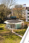 Den inglasade balkongen är en naturlig förlängning av bostadens vardagsrum. Med plats för loungemöbler och en fin utsikt mot den gröna innergården är det en perfekt plats för avkoppling under större delen av året.