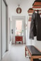 Från markplan tar vi hissen upp till tredje våningen och kliver in i en välkomnande hall med vacker ljus ekparkett och släta vita väggar som sätter tonen för resten av bostaden. Här finns generöst med plats för både avhängning och förvaring, samt en praktisk klädkammare på vänster sida som erbjuder extra utrymme för ytterkläder och övriga tillhörigheter.