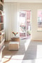 Ljust och trivsamt vardagsrum med gott om plats för soffgrupp, läshörna och övrig möblering. Härifrån nås den generösa uteplatsen i soligt söderläge med trädäck, plats för utemöbler och loungehörna samt ett rymligt förråd.