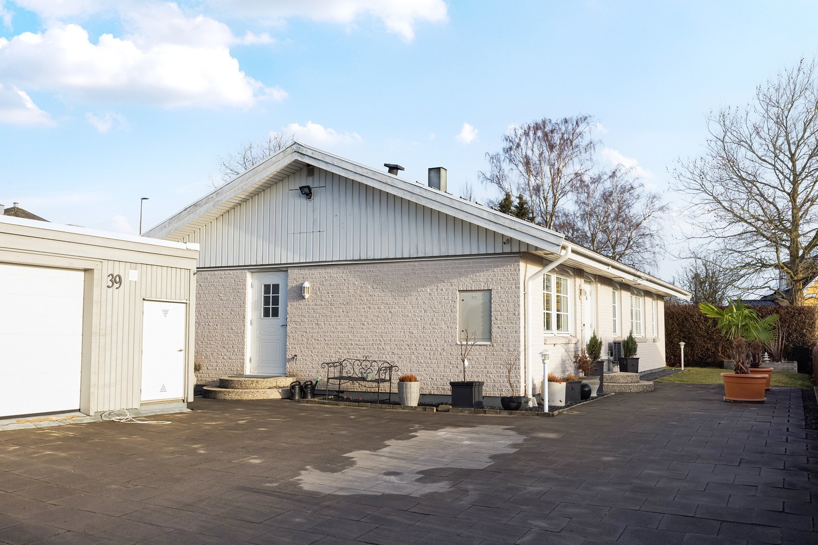 1-planshus på insynsskyddat läge med gröna omgivningar