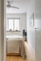Precis efter hallen finns en passage som leder dig in till rummen i bostaden. Här står idag en garderob som smälter in väl där du kan gömma undan både det ena och det andra. Vill man är detta utrymmet också bra som exempelvis en liten kontorshörna eller att nyttja på annat vis.