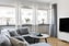 Vidare in i bostaden möts du av en passage som knyter samman lägenhetens rum. Här finns idag en garderob som ger extra förvaringsmöjligheter. Till vänster finner du det stilrena köket. Här kombineras funktion och estetik på ett tilltalande sätt med lite mörkare golv, vita köksluckor och en bänkskiva i grått. Stänkskyddet i vitt liggande kakel harmonierar snyggt och ger köket en modern och elegant karaktär. Plats för matbord upp till fyra personer – perfekt för både frukostar och sociala stunder. Här finns alla möjligheter för att skapa ett drömkök!