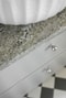 Badrummet är en dröm i tidlös elegans: schackrutigt klinkergolv med matt finish, väggar i blankt kakel och en vacker kommod i varmgrå ton med bänkskiva i Kolmårdsmarmor. Här finns badkar på tassar, kromade detaljer från Tapwell och ett genomgående klassiskt uttryck som andas brittisk charm.
