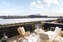 Ljuvlig uteplats med trädäck med havsutsikt. Plats för solstolar och matbord.