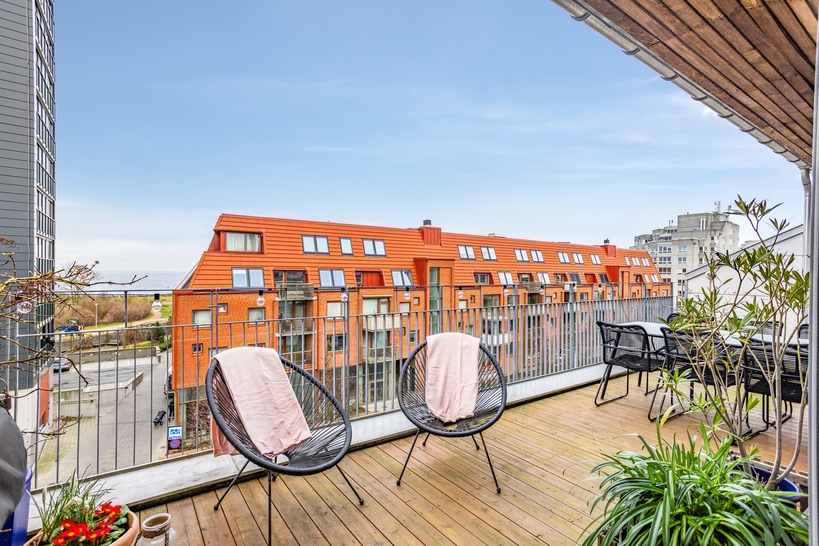 Modern trea med havsutsikt och rymliga balkonger
