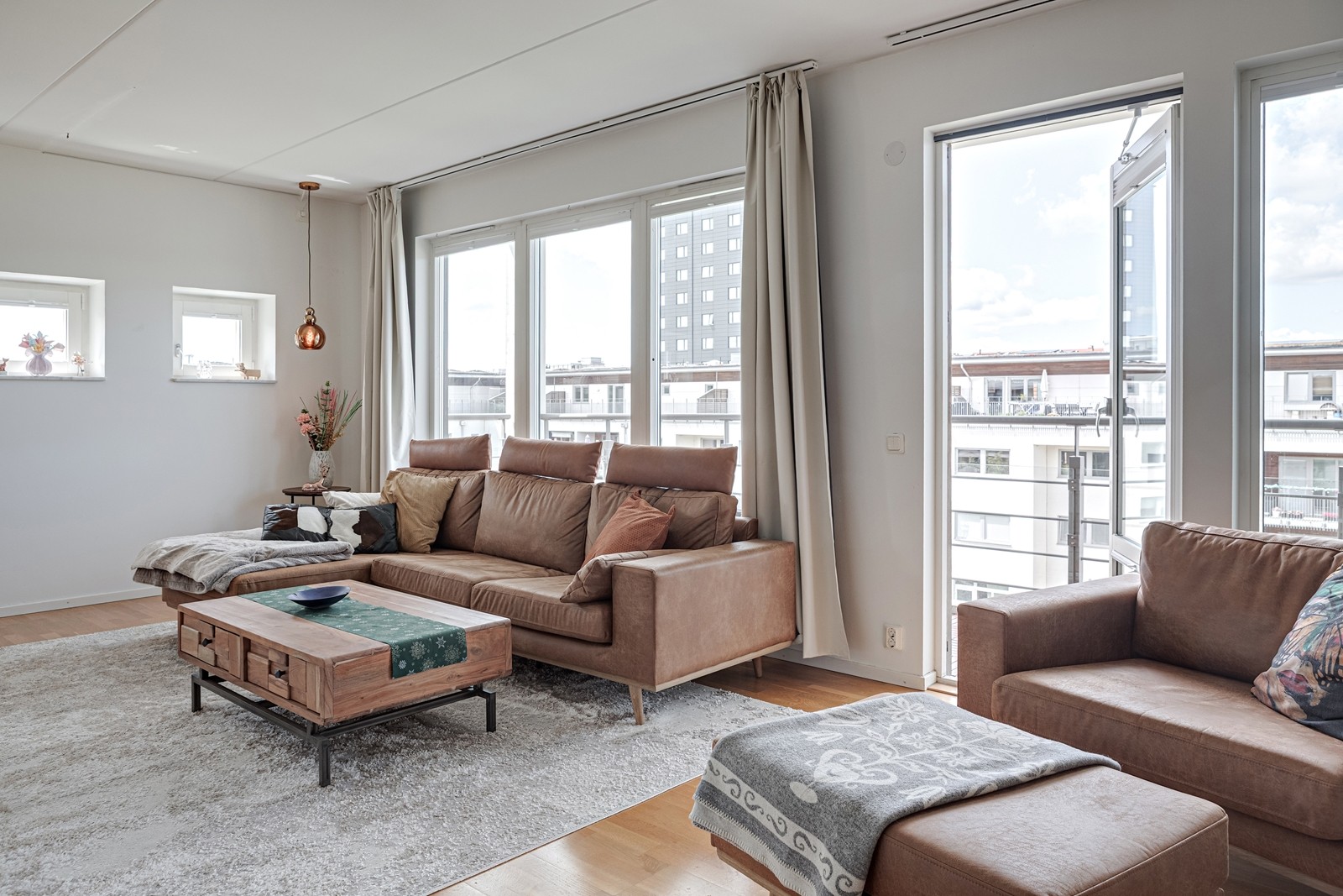 Ljus hörnlägenhet med solig balkong och havsglimt på populära Ön!