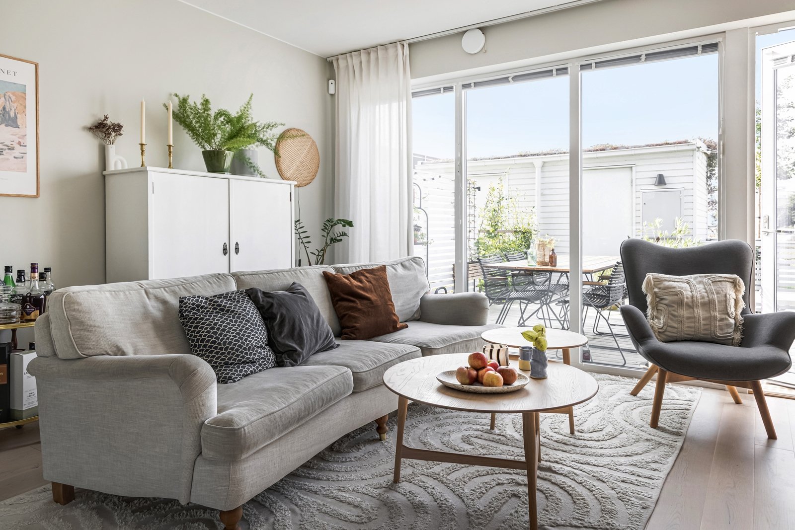 Planlösningen med de dubbla uteplatserna samt en liten trädgård gör detta boende till ett härligt radhusliv. Smakfulla materialval, designlinje som speglar nordisk livsstil. Egen biluppställningsplats med tillhörande laddstolpe vid entrén skapar en enkel vardag.