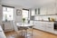 Här finns gott om plats för både soffa och fåtöljer, och köket – från IKEA i stilrent vitt – är fullt utrustat med ugn, spishäll, fläkt, diskmaskin samt kyl och frys. Den rymliga matplatsen rymmer 6–8 personer och bjuder in till långa middagar och trevliga stunder tillsammans.