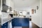 Det totalrenoverade köket har mörkvaxad ek på golvet och vita väggar som ger en luftig känsla. De blåa och vita köksluckorna ger en modern men ändå hemtrevlig känsla. Här finner du en stor bänkskiva i vit marmor, perfekt för både matlagning och socialt umgänge. Köket är utrustat med vitvaror från Electrolux, induktionshäll från Siemens och rostfri kyl och frys. En köksö som står öppet mot vardagsrummet bidrar till den sociala ytan och ger dig fri sikt från köket till vardagsrummet. Dessutom finns en dörr som leder ut till en uteplats – perfekt för den som vill ha ett utrymme utomhus för att njuta av solen.