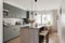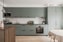 Känslan av nytt i lägenheten är påtaglig, liksom den ombonade känslan som fås genom fina accenter i dämpade toner. Köksinredningen sticker ut med sina gröna luckor och inslag av mörkt trä. Nyanser av både grått och beige förekommer även på interiör i badrum och på väggarna i ett av sovrummen.