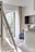 Väggar är kaklade i vita rektangulära kakelplattor och med ljust klinker på golv. Badrummet är utrustat med infällda spotlights i tak, dusch med vikbara duschväggar, handfat, kommod, två badrumsskåp samt arbetsbänk ovan kombinerad tvättmaskin (med torkfunktion).