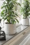 Via hallen når vi köket som ligger i öppen planlösning med sällskapsrummet. Modernt Vedum-kök med släta vita luckor, mörk bänkskiva och fint vitt kakel baktill. Bra arbetsyta erbjuds i köket och maskinparken är komplett. Denna består av kyl, frys, induktionshäll , varmluftsugn, fläkt, integrerad mikrovågsugn och diskmaskin.