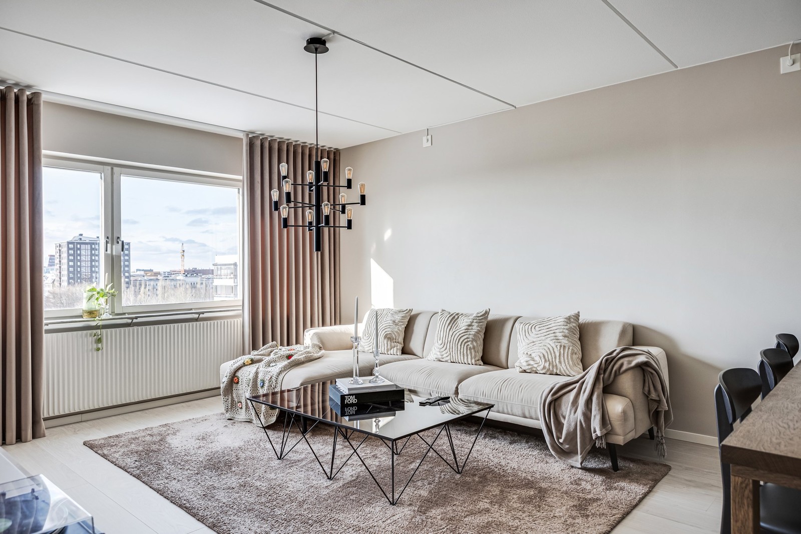 Högt upp med milsvid utsikt – stilren bostad med inglasad balkong i västerläge