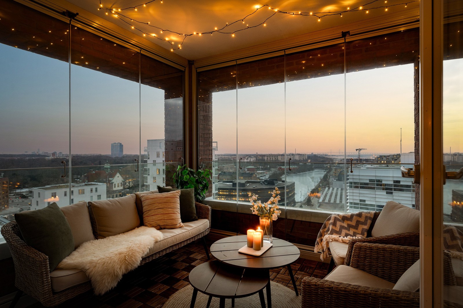På oslagbart hörnläge, med spektakulär utsikt från 13:e våningen, möts du av detta magnifika hem med smakfull interiör och inglasad balkong i sydväst.