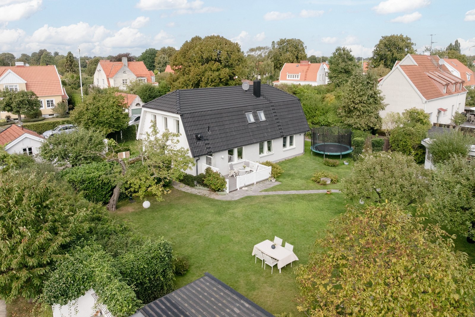 Trivsamt och modernt boende, stor insynsskyddad trädgård och fint gästhus med badrum och kök.