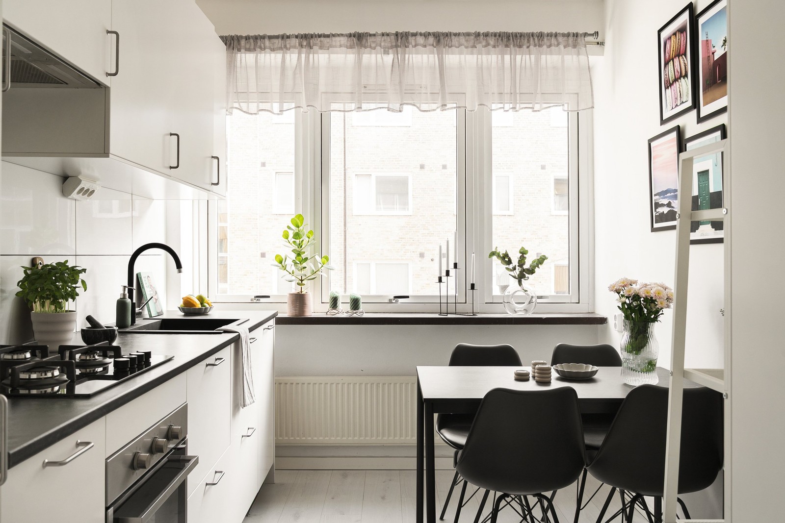 Köket totalrenoverades av tidigare ägare under 2022. Köket är från Ikea och erbjuder en snygg vit skåpsinredning som snyggt kombineras med mörk laminatskiva och kakel ovan som stänkskydd. Ger plats för matbord till 4-5 personer runt. Utrustat med spishäll, ugn, kyl/frys samt diskmaskin.