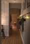 Sovrummet är generöst och rofyllt, med gott om plats för dubbelsäng och förvaring. Det mjuka ljuset, de sandfärgade väggarna, trägolvet och den eleganta lampstuckaturen skapar en stillsam och varm atmosfär.