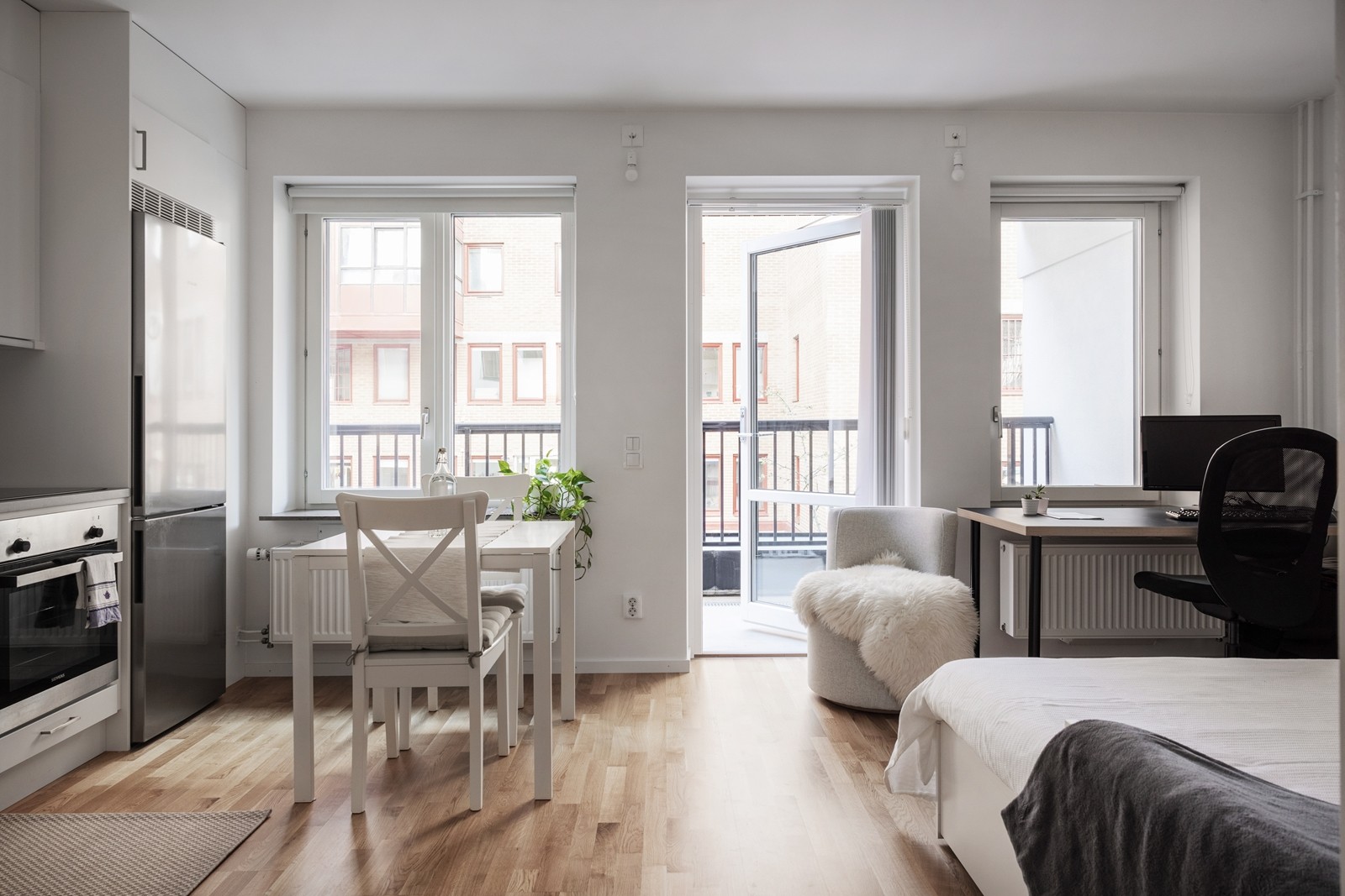 På gårdsläge med solig balkong