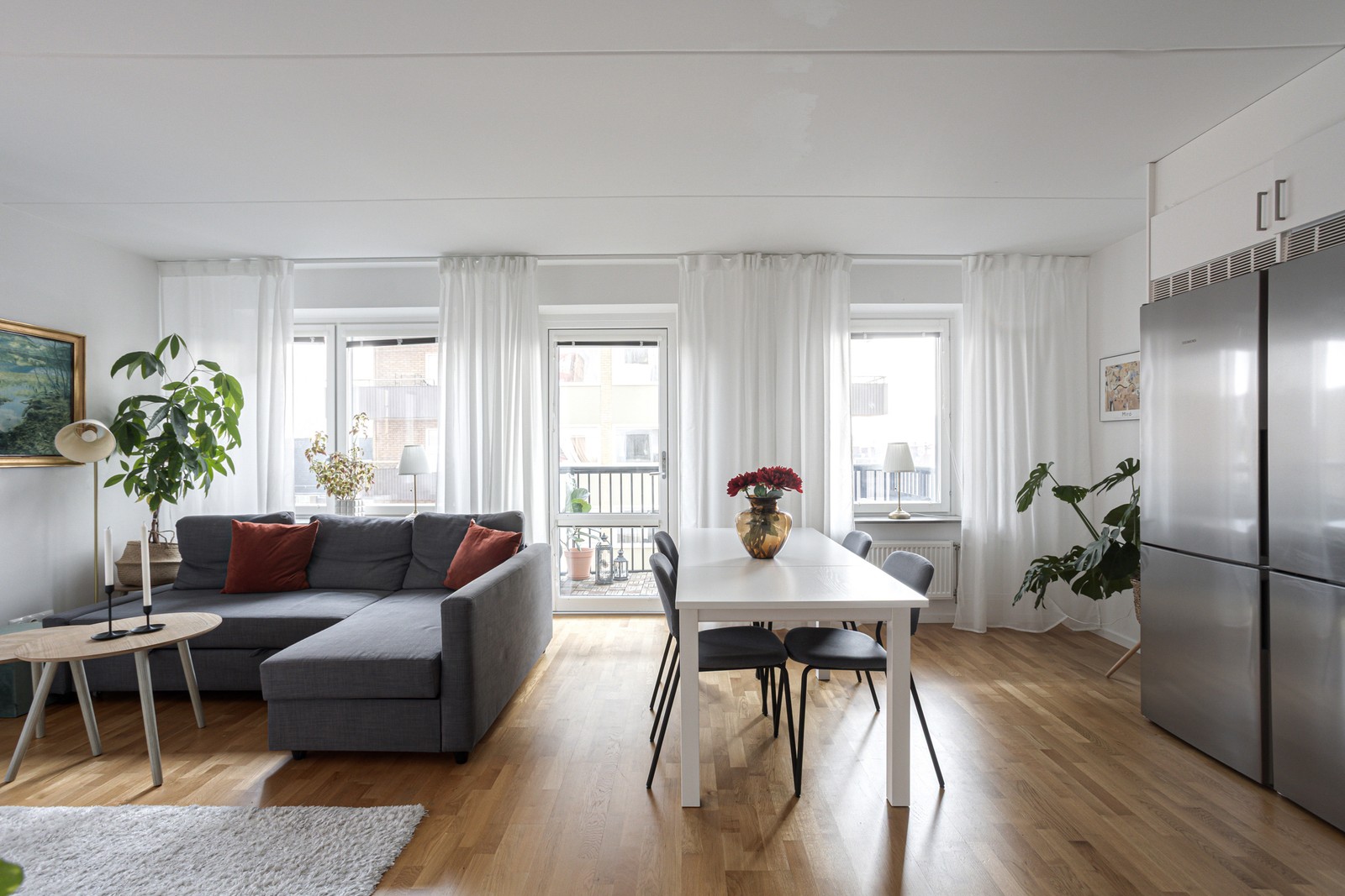 Detta härliga hem erbjuder en underbar social yta mellan kök och vardagsrum med utgång till balkongen, perfekt för umgänge och sköna dagar hemma. Allt är i nyskick med kvalitativt Vedumkök med stilrena val med ljusa luckor och dubbel kyl och frys.