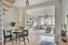Vardagsrummet är rymligt med lugn färgpalett och ett fantastiskt ljusinsläpp från stora fönster. Rummet har en social planlösning som inbjuder till soffa, mediamöbler och samvaro med gäster. Den öppna känslan gör det lätt att skapa olika möbleringszoner och en naturlig del för matplats. Vitmålade väggar och parkettgolv.