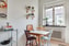 Köket som ligger praktiskt till vänster om entrén bjuder på en rogivande utsikt över innergården, och totalrenoverades år 2019. Det moderna utförandet med vita luckor, laminatbänkskiva och vitt kakel ger en ljus och fräsch känsla. Här finns all bekvämlighet du behöver med ugn, spishäll, kyl, frys, fläkt och diskmaskin. Den generösa ytan rymmer dessutom ett matbord för fyra.