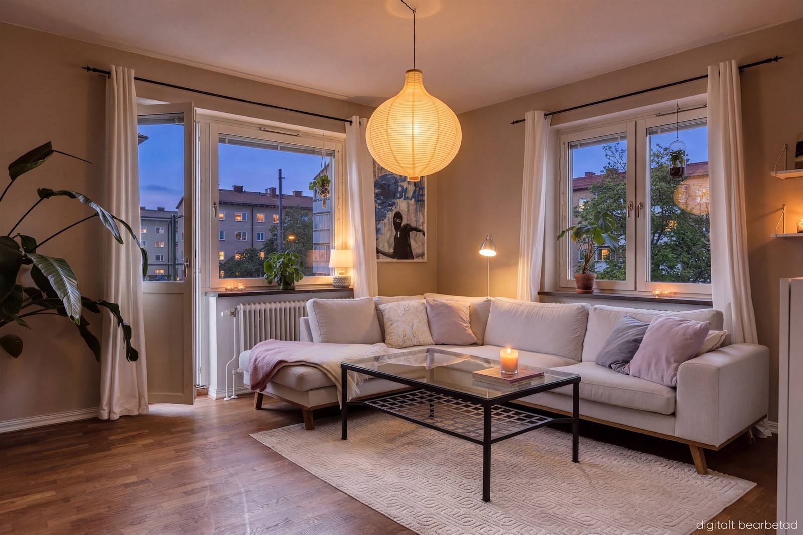 Välkommen till en ljus och välplanerad hörnlägenhet med genomgående planlösning och en härlig känsla av rymd. Det generösa ljusinsläppet från tre väderstreck skapar en luftig och trivsam atmosfär, medan den långa hallen på ett naturligt sätt binder samman bostadens alla delar. Här möts du av fina golv i samtliga rum, med vacker parkett i hall och vardagsrum samt ett charmigt brädgolv i sovrummet. Originaldetaljer som trädörrar binder på ett vackert sätt ihop lägenheten och ger hemmet en genuin och varm karaktär.