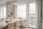 SOVRUM/BALKONG: Mot gårdssidan ligger ligger det rymliga och harmoniska sovrummet med ekparkett, där varje detalj andas lugn och elegans med generösa förvaringsmöjligheter. De kalkfärgade väggarna och det matchande taket ger rummet en mjuk känsla och skapar ett rogivande skimmer. Rummet förlängs av bostadens balkong med grönskande utsikt.