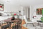 Ljust och luftigt allrum i öppen planlösning mot köket, vilket skapar sociala och lättmöblerade ytor. Här finns plats för både soffgrupp, matplats och sovdel – en flexibel planlösning som maximerar varje kvadratmeter.