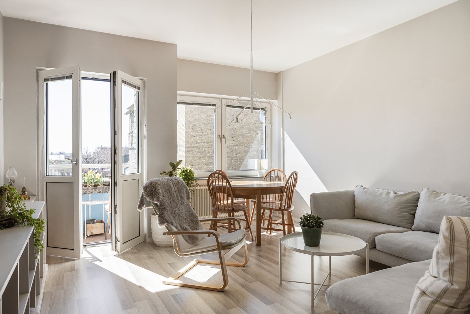 Planlösningen är genomgående med ljusinsläpp från två väderstreck och en ljuvlig balkong i söderläge.