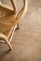 Intill köket ligger sovrummet som är stort nog att rymma dubbelsäng och vacker platsbyggd förvaring. Fiskbensparkett och grönmålade väggar.