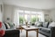 Trivsamt vardagsrum med parkettgolv och målade väggar. Rummet erbjuder goda möbleringsmöjligheter för soffgrupp och umgänge, med ett behagligt ljusinsläpp.