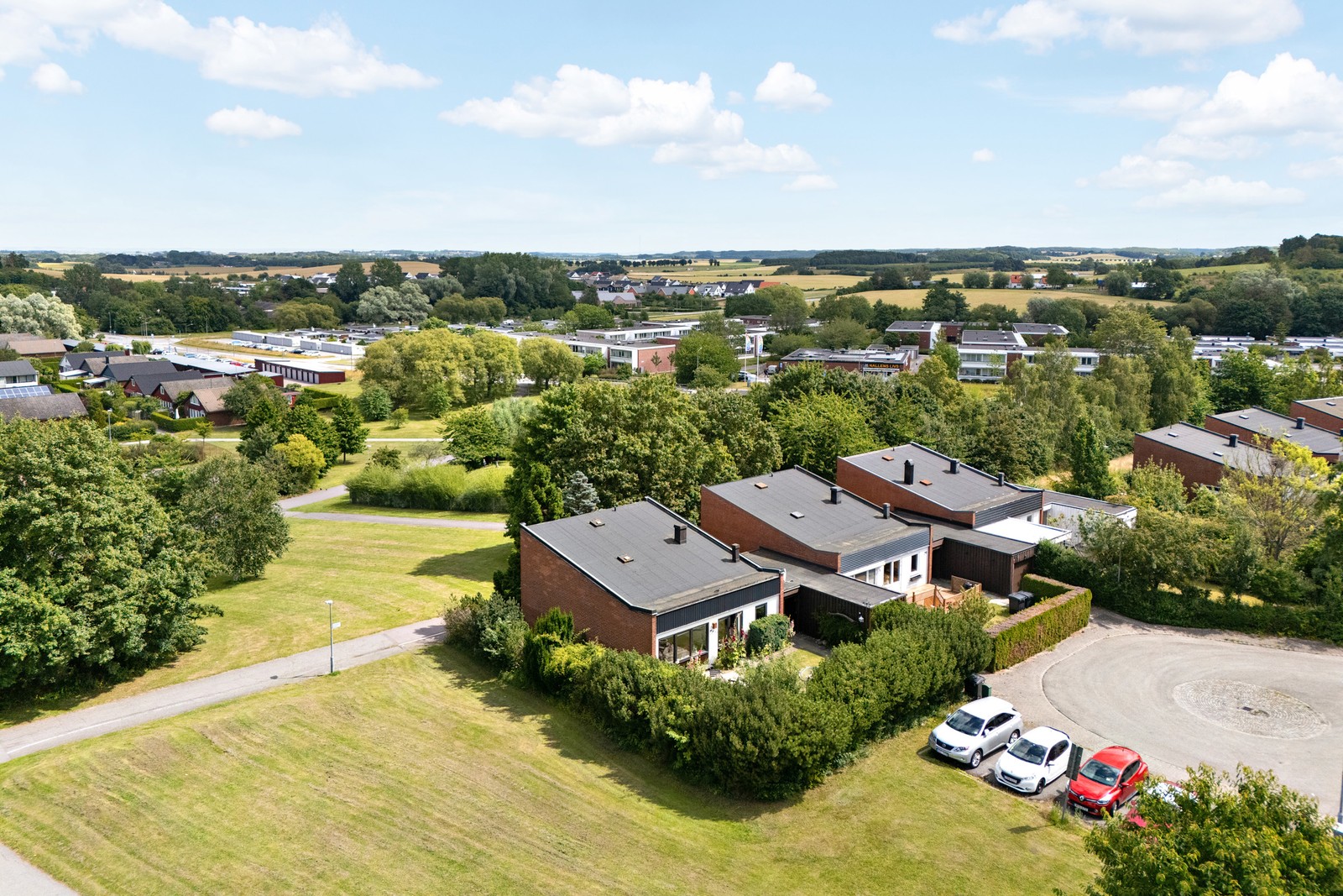Hörntomt med grönskade omgivningar