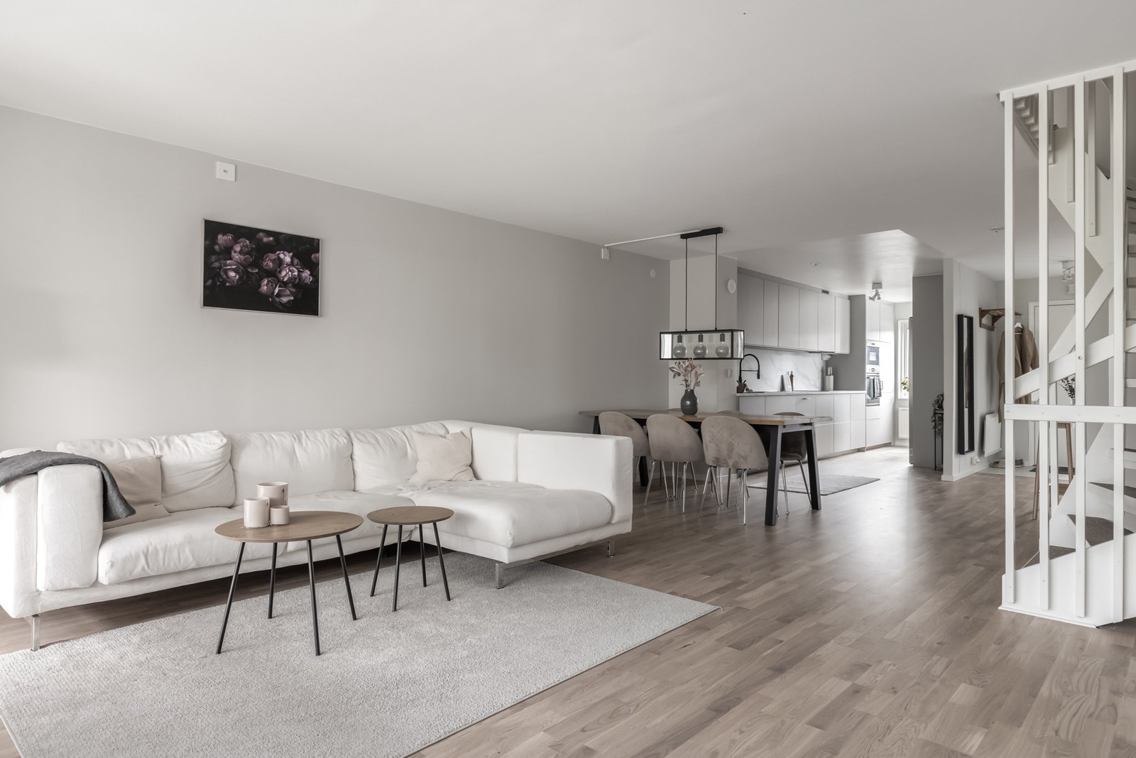Nu har du chansen att förvärva detta totalrenoverade radhus i stabil förening. Perfekt för den som vill ha huskänsla men tryggheten från en BRF.