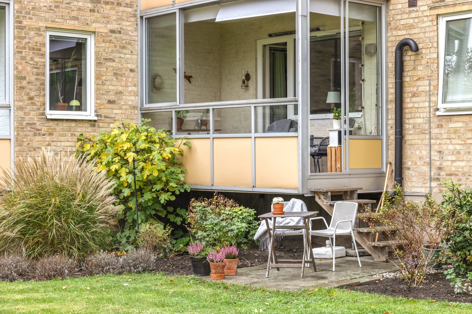 Genomgående tvårummare med både inglasad balkong och uteplats. Granne med Pildammsparken