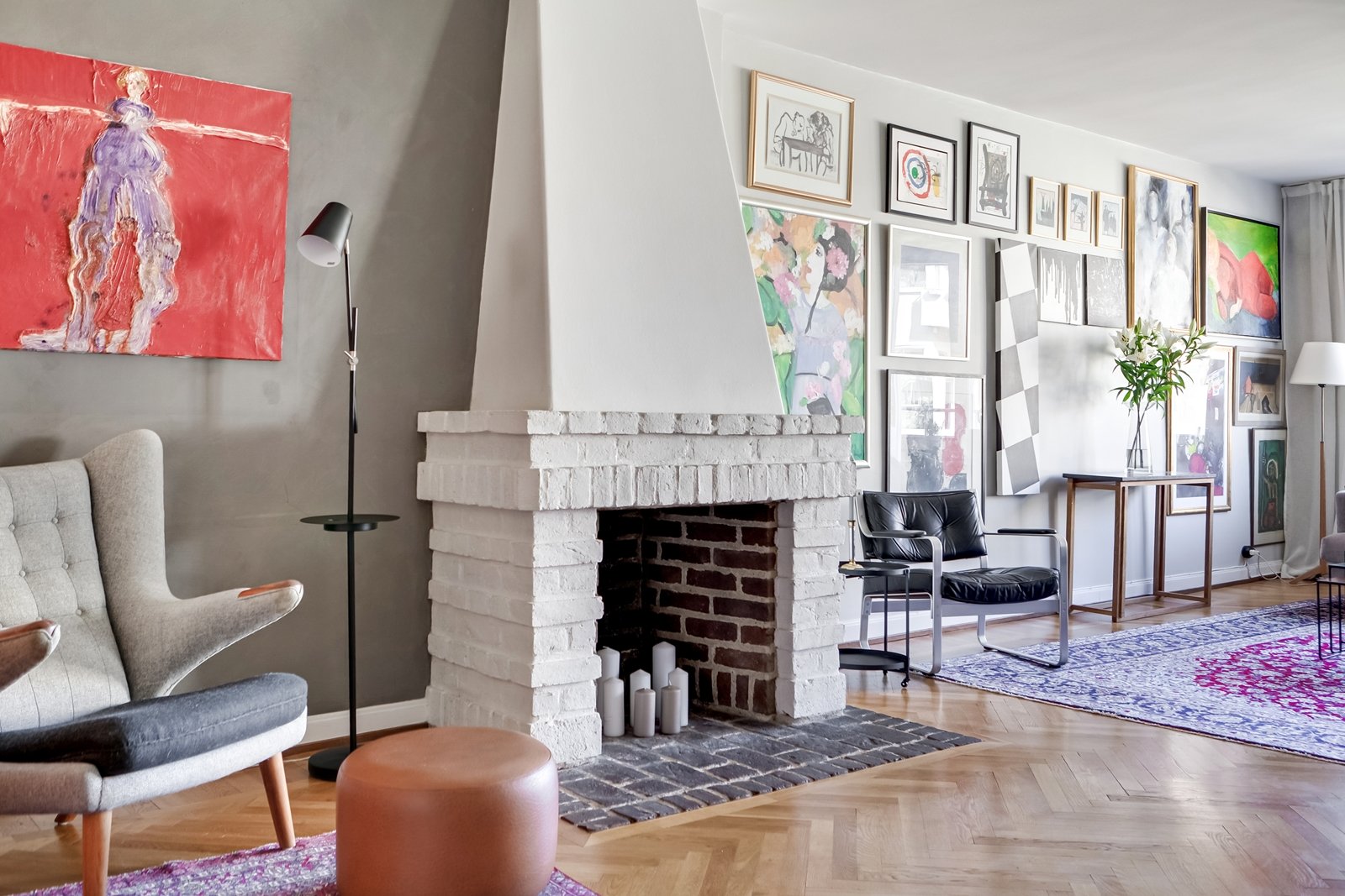Redan i hallen möts vi av vacker fiskbensparkett som skapar karaktär till bostaden. Ett par kliv in i lägenheten och blickfånget faller på den mysiga öppna spisen som är strategiskt placerad i den stora sällskapsavdelningen. Det moderna platsbyggda köket med grå luckor och full maskinell utrustning, stilrent integrerat, ligger i fil med vardagsrummet och skapar en social planlösning. Utöver detta erbjuder bostaden tre sovrum.