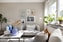 Vardagsrum - Här flödar verkligen ljuset in! Fritt läge och grönskande utsikt från det stora fönsterpartiet i sydväst. Plats för både matbord och soffgrupp. Utgång till balkongen, också den, i sydvästläge. Fiskbensparkett och ljusmålade väggar.