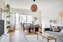 Luftigt och ljust vardagsrum med stort fönsterparti och utgång till balkong i väster. Väggarna är strukna i varmvitt och möts av stuckatur längs taket. Golvet pryds av fiskbensparkett. Ytan är väl tilltagen med plats för både soffgrupp och ett större matbord. Härifrån stiger du ut på balkongen i väster som vetter mot Roslins väg. Såhär nära Öresund är det fullt möjligt att förnimma den friska havsdoften.