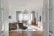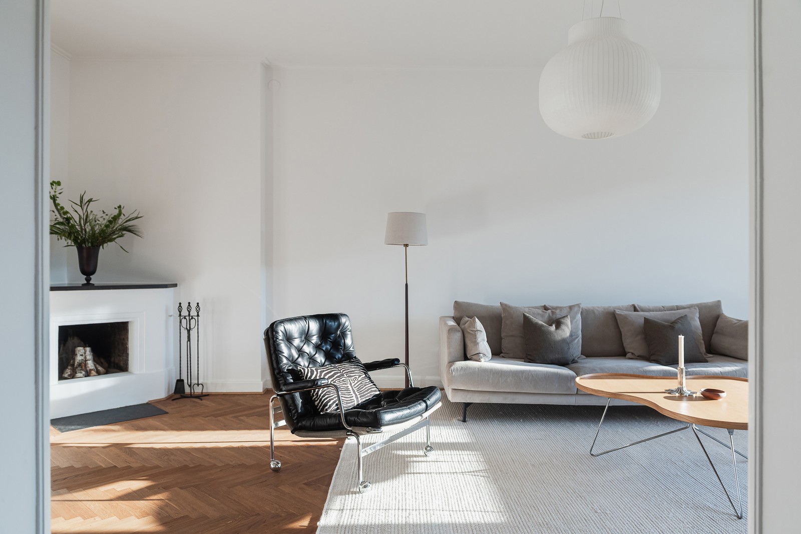 Vidare in i bostaden öppnar de sociala ytorna upp sig på ett naturligt och inbjudande sätt. Den vackra fiskbensparketten löper genom vardagsrum, matplats och sovrum och förstärker den enhetliga känslan. Den fungerande öppna spisen utgör en självklar mittpunkt och tillför både värme och karaktär. Vardagsrummet rymmer med lätthet en generös soffgrupp, och genom spröjsade glasdörrar nås den separata matplatsen – ett elegant rum för middagar och sociala tillställningar, som även med fördel kan disponeras som kontor eller extra sovrum.